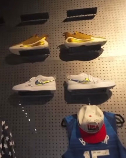 里面一面墙全部都是各种稀有球鞋,包括布克本人的PE、还有众多科比的稀有鞋款。除了球鞋,室内也摆放了众多布克喜爱的各种收藏级别的老爷车。
