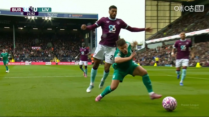 第4轮,利物浦客战伯恩利,比赛第22分钟,科尔克兹在禁区内倒地,裁判果断吹罚假摔并出示黄牌。